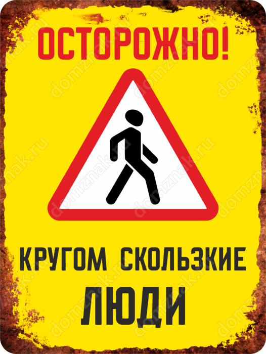 Табличка «Осторожно! Кругом скользкие люди» изготовлена из пластика ПВХ, толщиной 4 мм. Изображение наносится по технологии УФ-печати. Табличка предназначена для использования как в помещении, так и на улице.